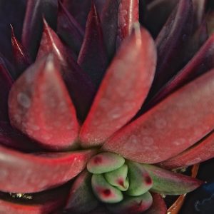 Echeveria ‚Galaxy Mars‘ besitzt auch die wunderbare für Echeverien typische Rosettenform. Zum Zentrum hin sind die Blätter grün, die Spitzen in einem leuchtenden Rot das sich verstärkt, wenn die Pflanze länger trocken steht. Wird sie zu viel gegossen oder ist der Standort zu dunkel nehmen die Blätter eine immer grünere Farbe an. Auch könnt ihr an der Festigkeit der Blätter sehen, wie viel Wasser sie gerade in diesen sukkulenten Pflanzenteilen speichert.