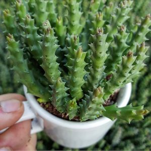 Oftmals ist es problemlos möglich, einen einzelnen Stamm mit den Wurzeln herauszuziehen. Diesen pflanzt man direkt in das für ausgewachsene Pflanzen empfohlene Sukkulentensubstrat. Wenn der Stamm beim herausziehen abreißt und keine Wurzeln besitzt, schneidet man mit einem scharfen Messer die Bruchstelle sauber. Das Teilstück lässt man nun antrocknen und pflanzt ihn dann in das empfohlene Substrat.
