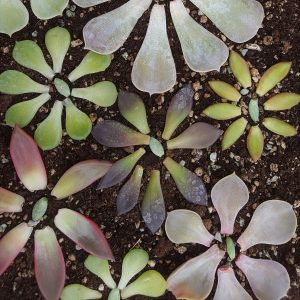 • Wenn du auf dem ersten Blick nicht viel Fortschritt siehst, geduldig bleiben. Einige Blätter wie zb. Pachyphytum ‚Gluteniocaule‘ sprießen normalerweise innerhalb einer Woche, andere wie die von Echeveria laui oder Echeveria ‚Galaxy Mars‘ können bis zu einem Monat oder länger dauern.